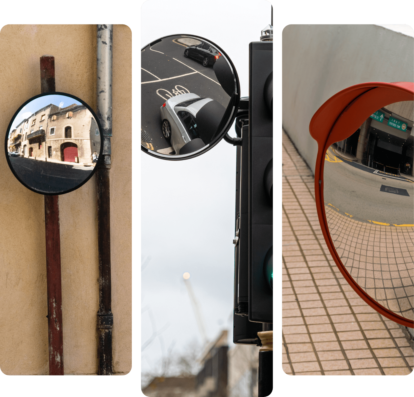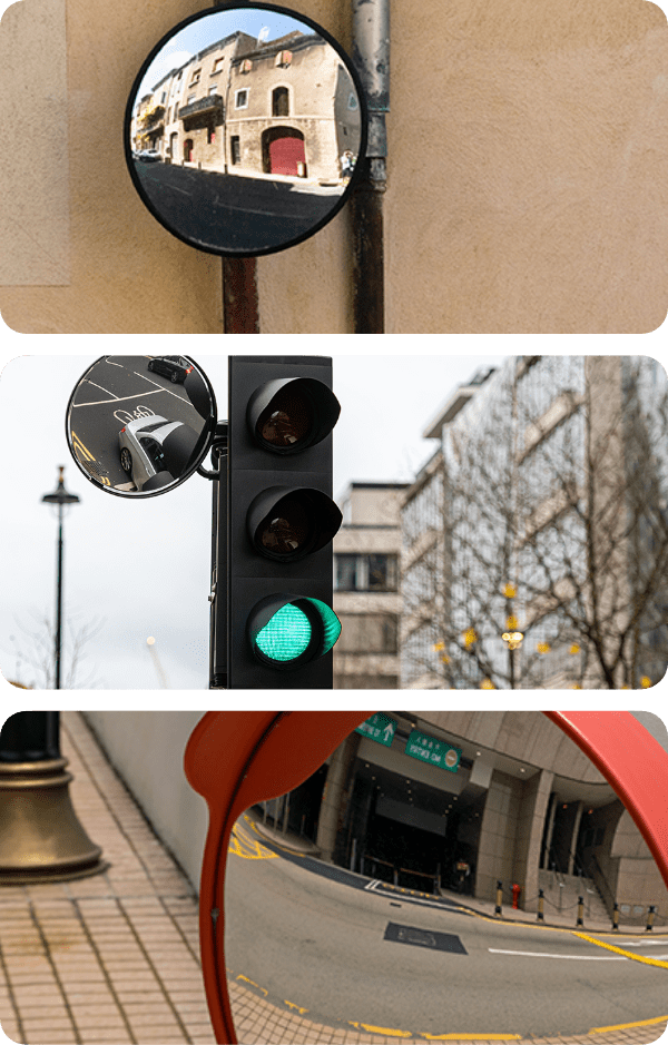 Convex mirrors can be installed on various types of surfaces, like…